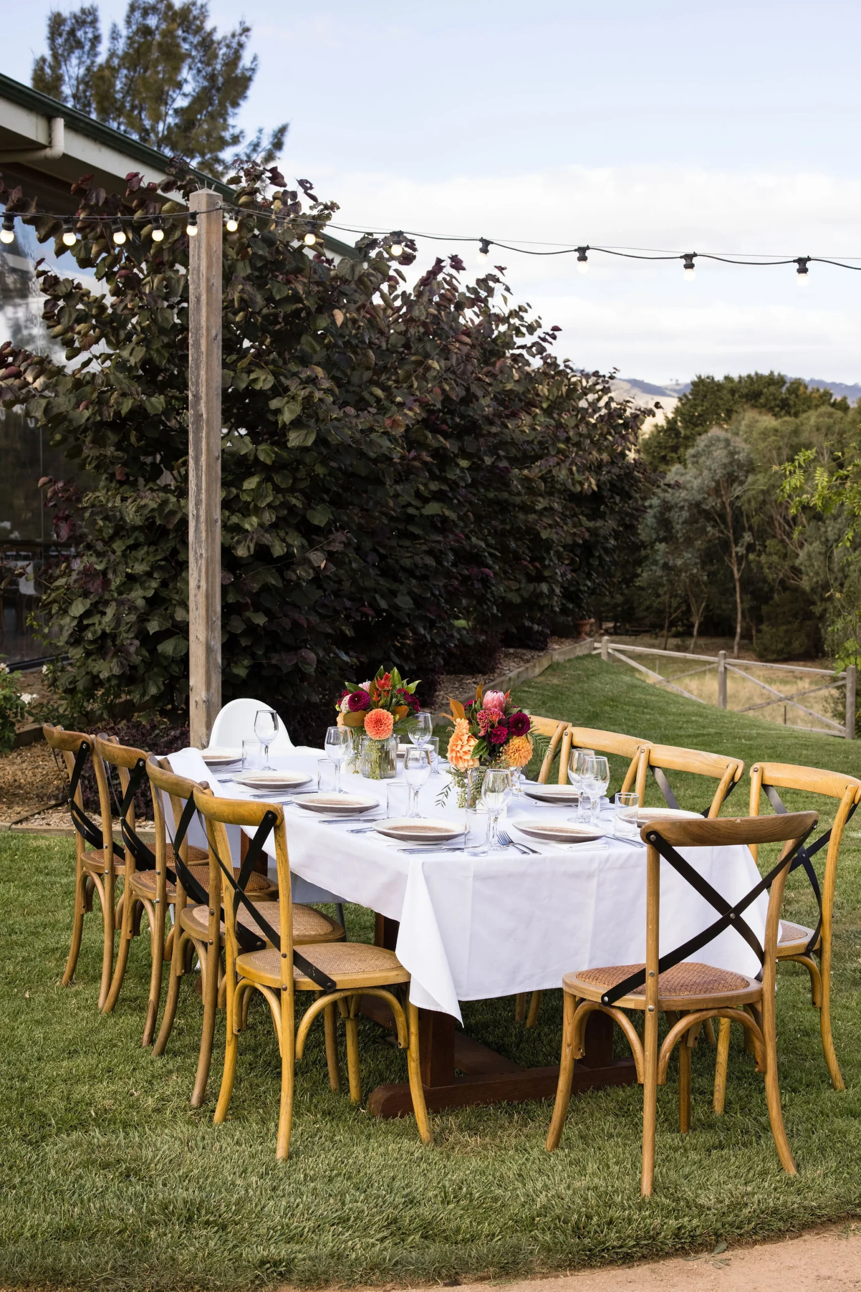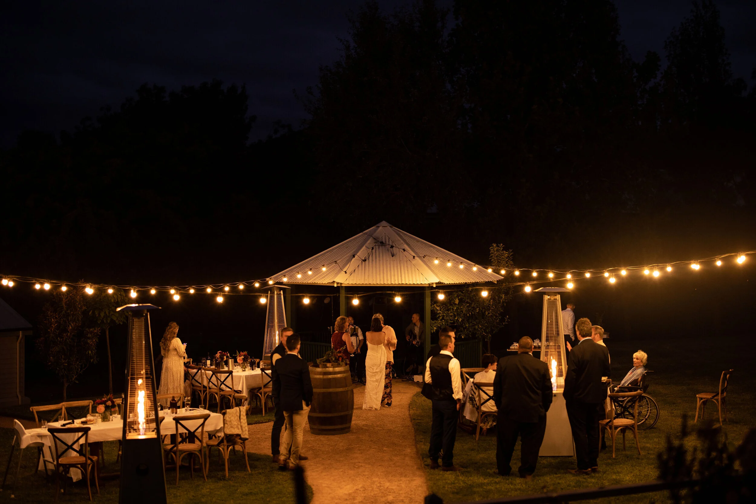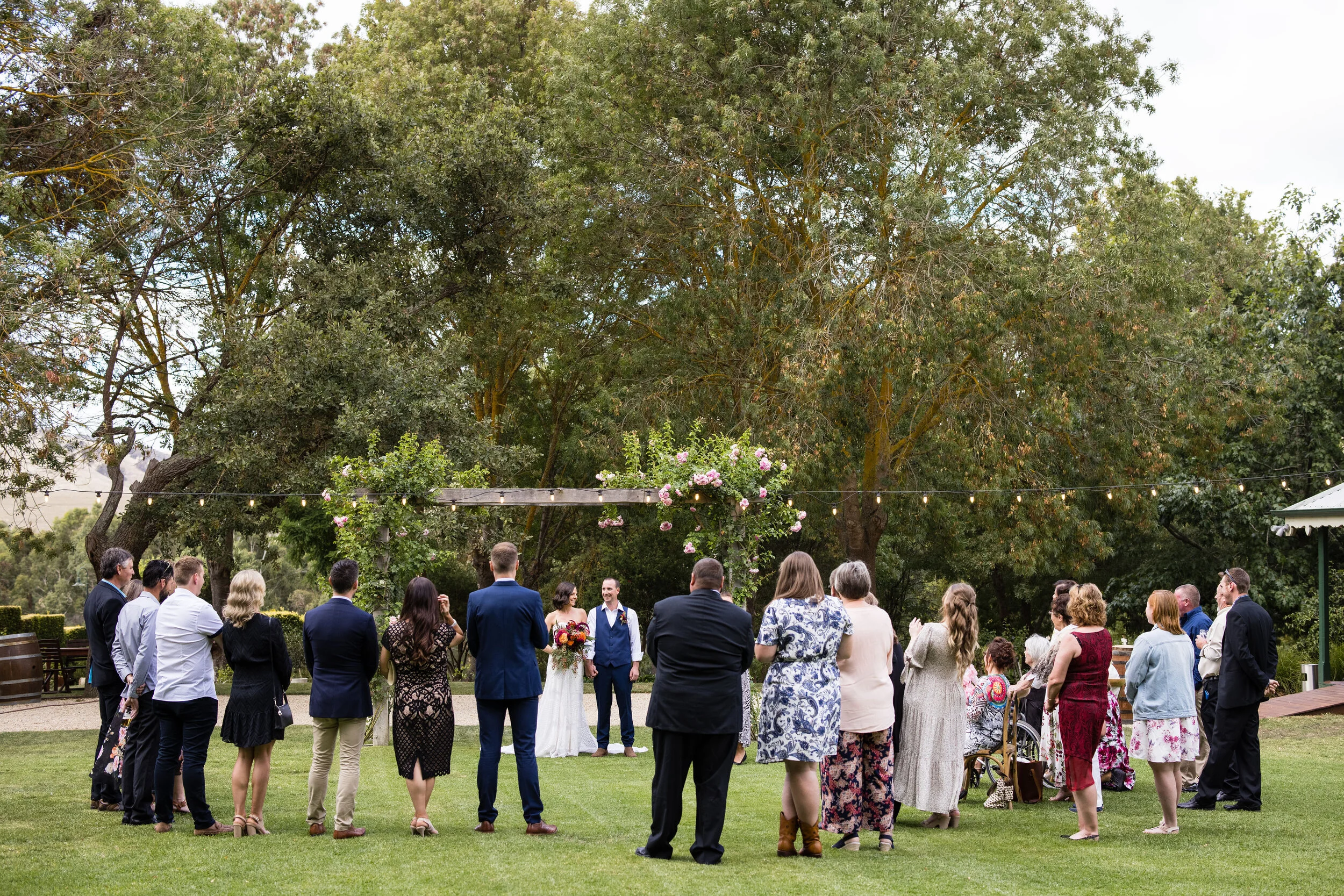 Kelsey and Shane had plenty of reasons to be married this way. The main one was that they wanted their day organised quickly with minimal fuss at their end. The list of important things was their closest people with them, outdoor dining under the stars and something with accommodation onsite for themselves and their families.