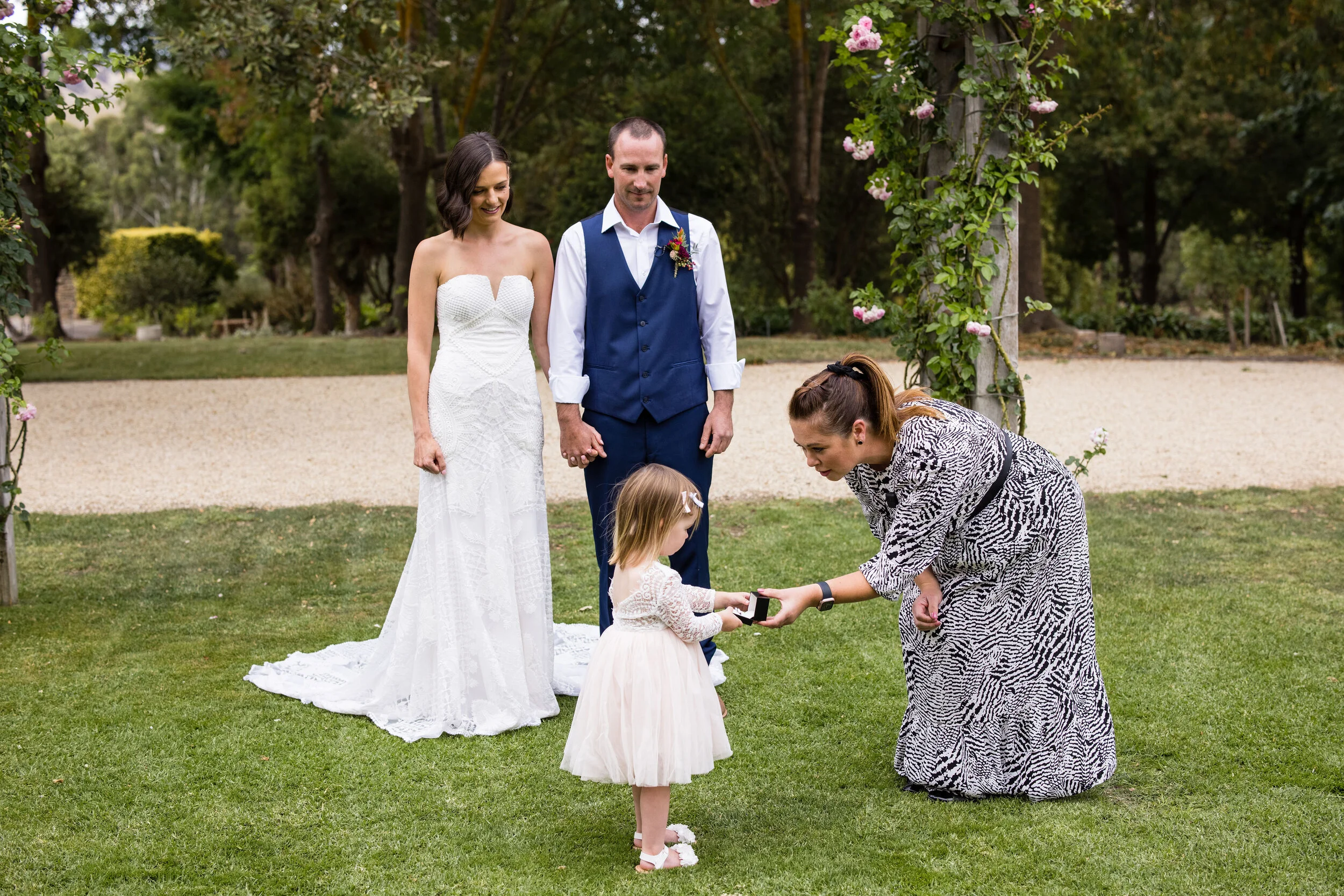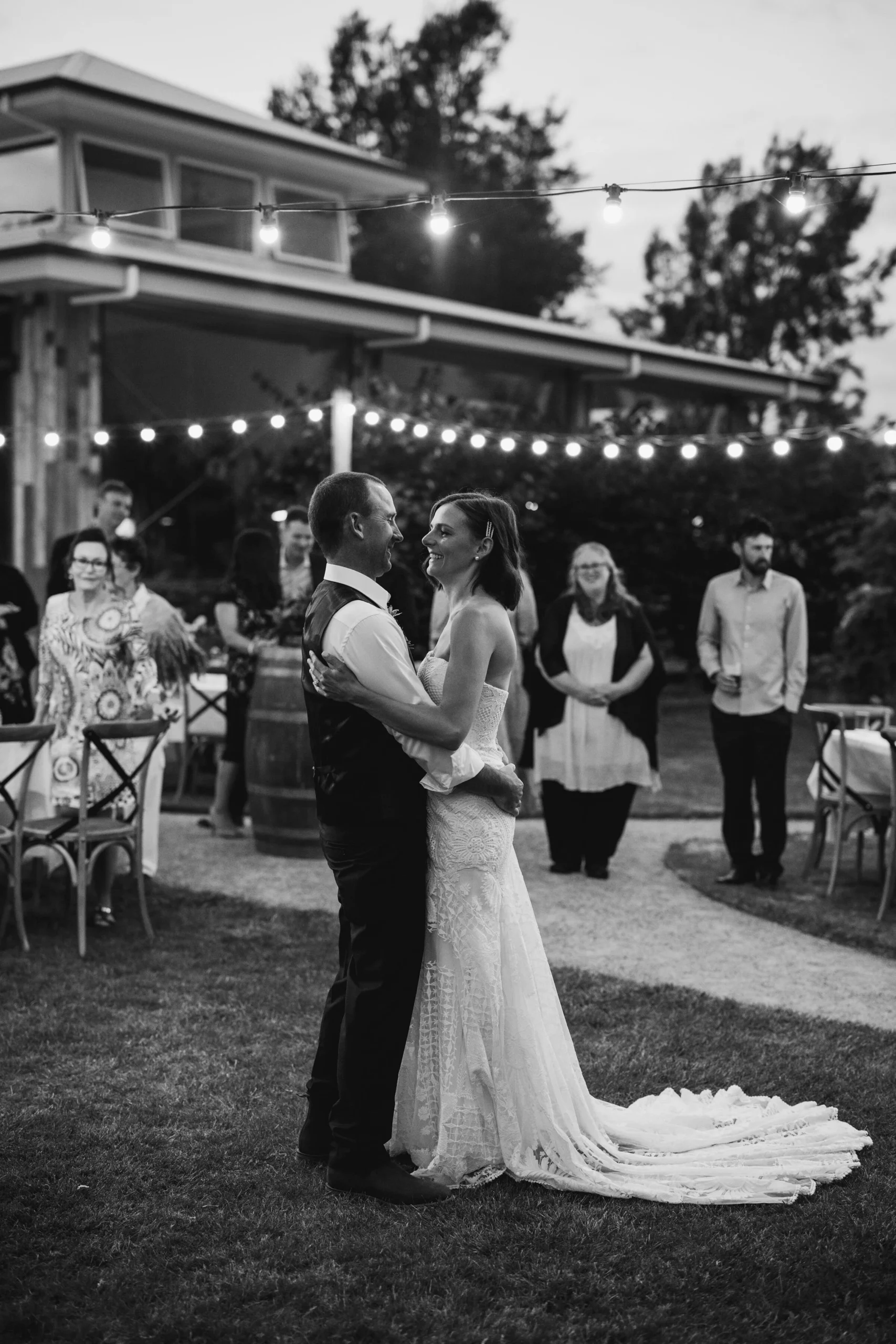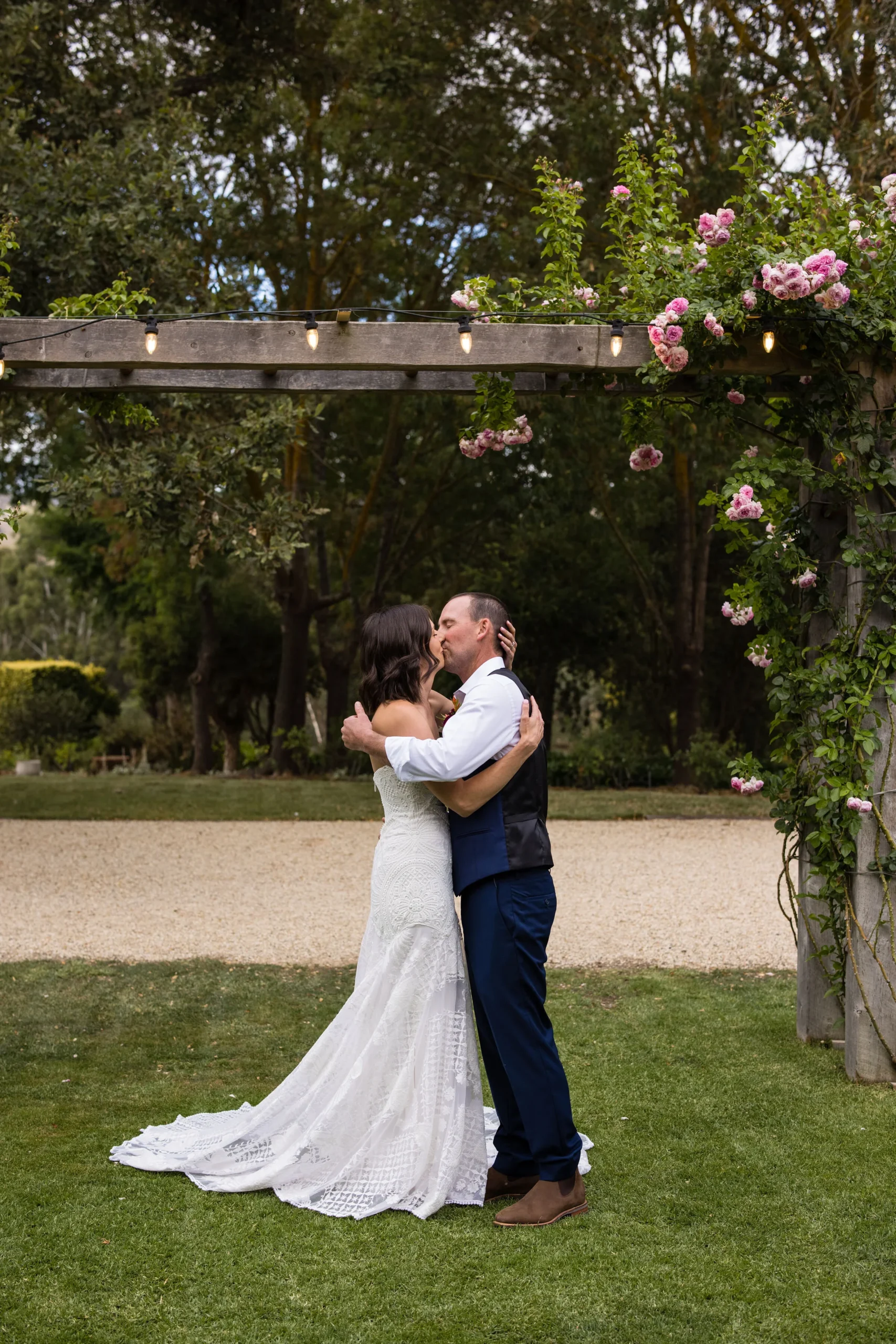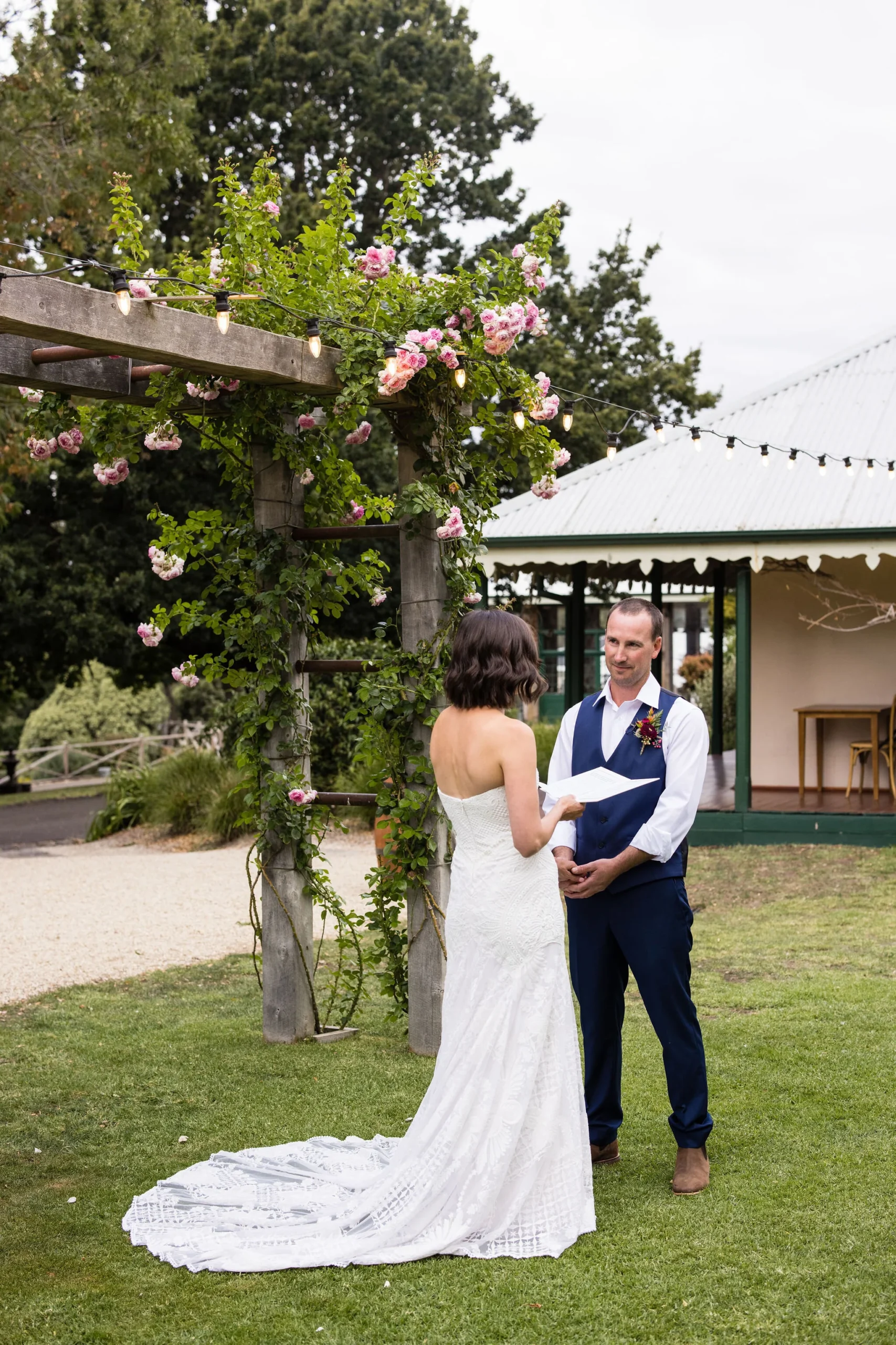 Kelsey and Shane had plenty of reasons to be married this way. The main one was that they wanted their day organised quickly with minimal fuss at their end. The list of important things was their closest people with them, outdoor dining under the stars and something with accommodation onsite for themselves and their families.