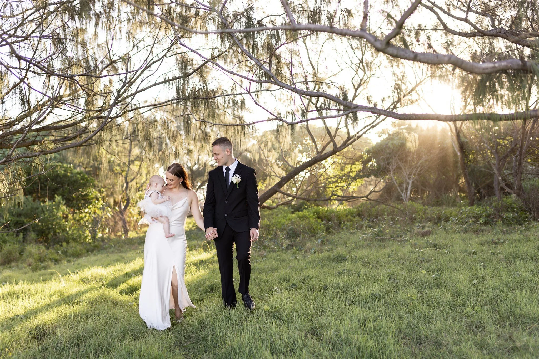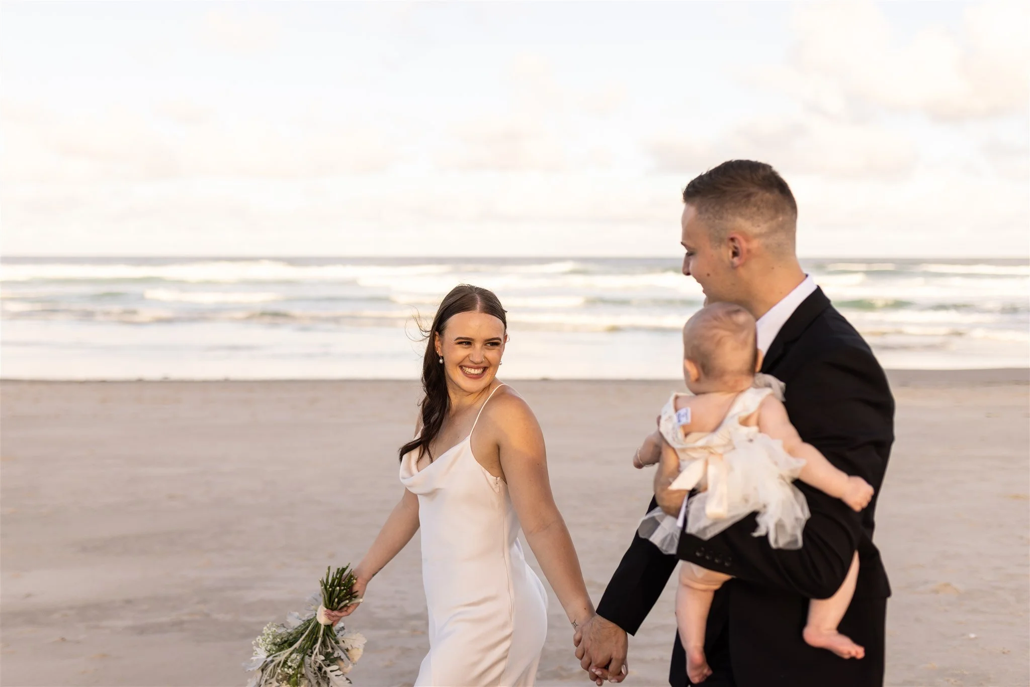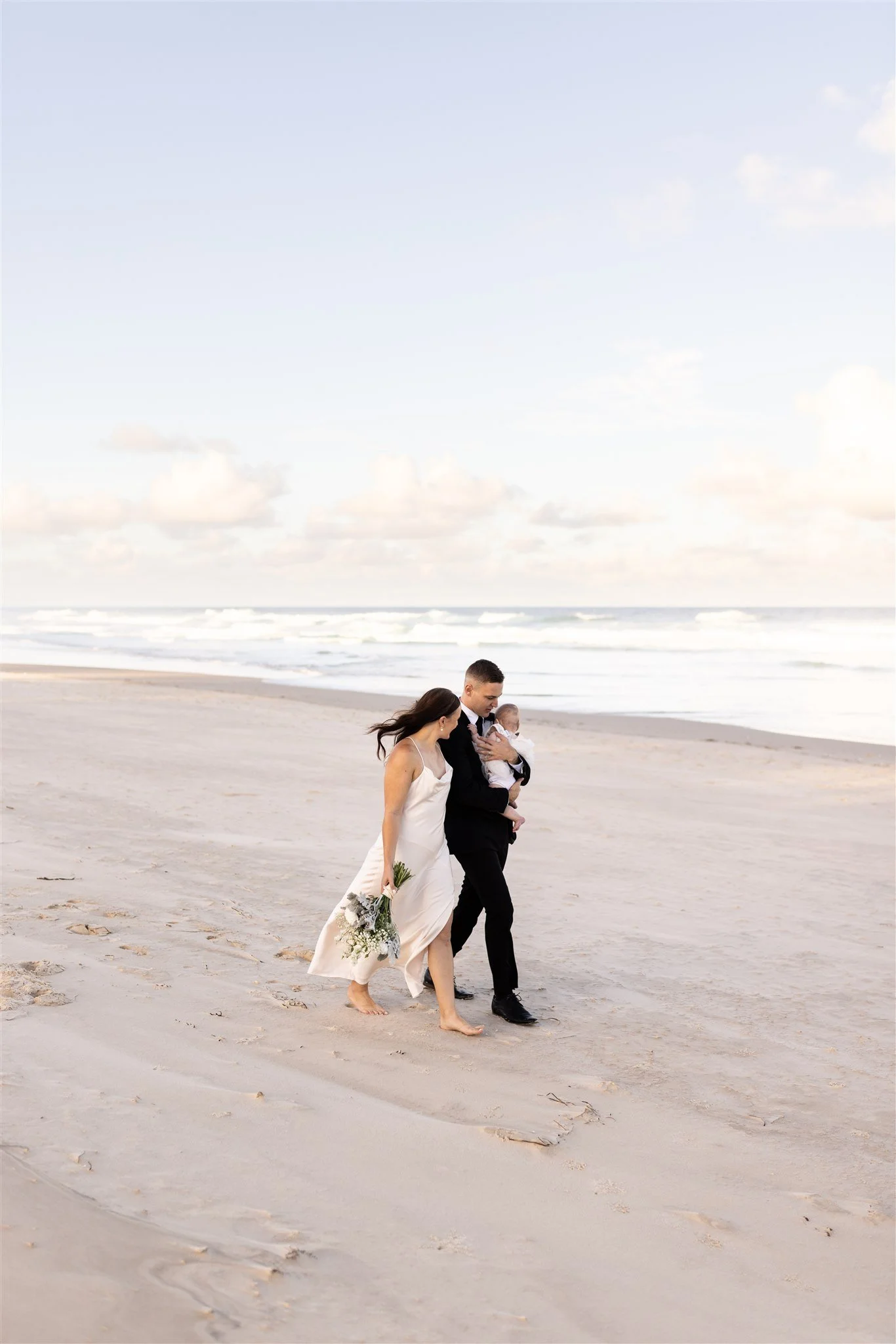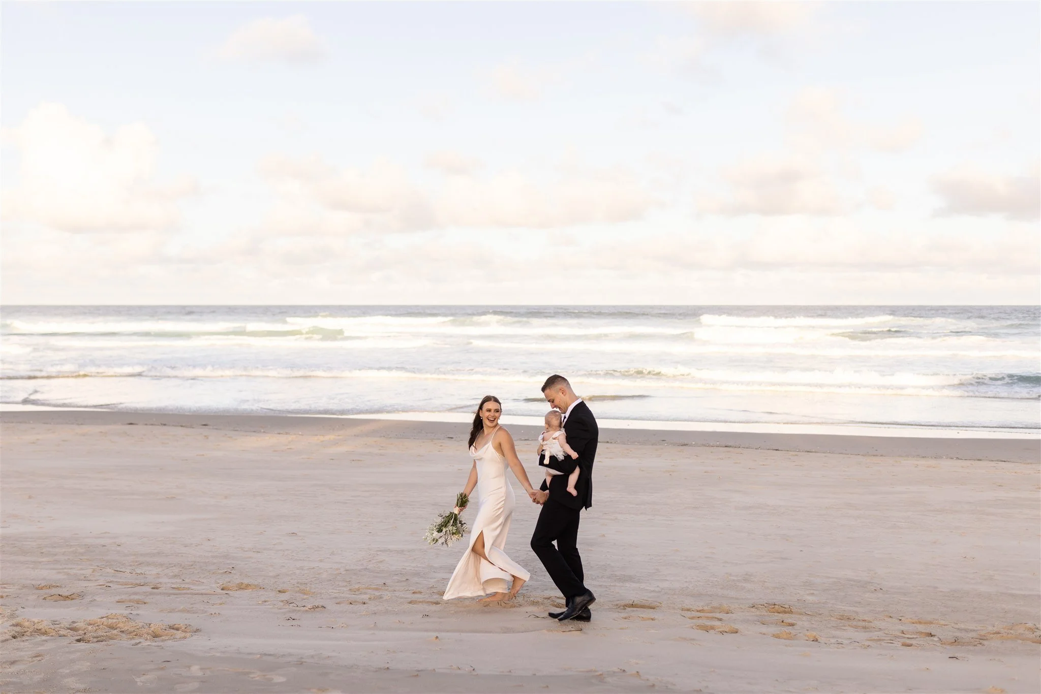 Right on the border of NSW and Queensland, Carly and Liam had their gorgeous elopement in Kingscliff, right beside the beach, with only their beautiful little one with them on the day. Accompanied by the most gorgeous weather, and officiated by our amazing celebrant Jess, their elopement by the sea couldn’t have been anymore perfect.