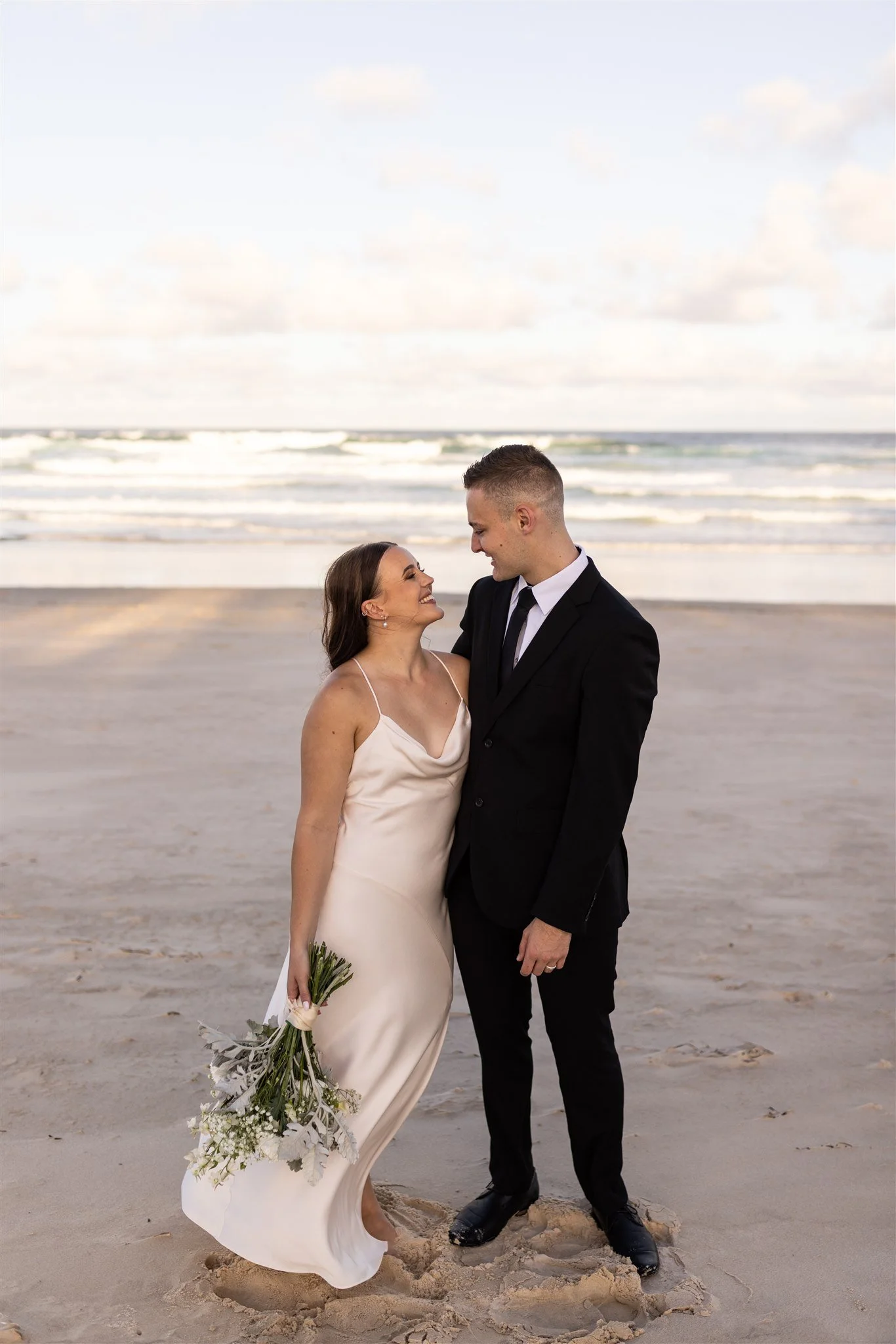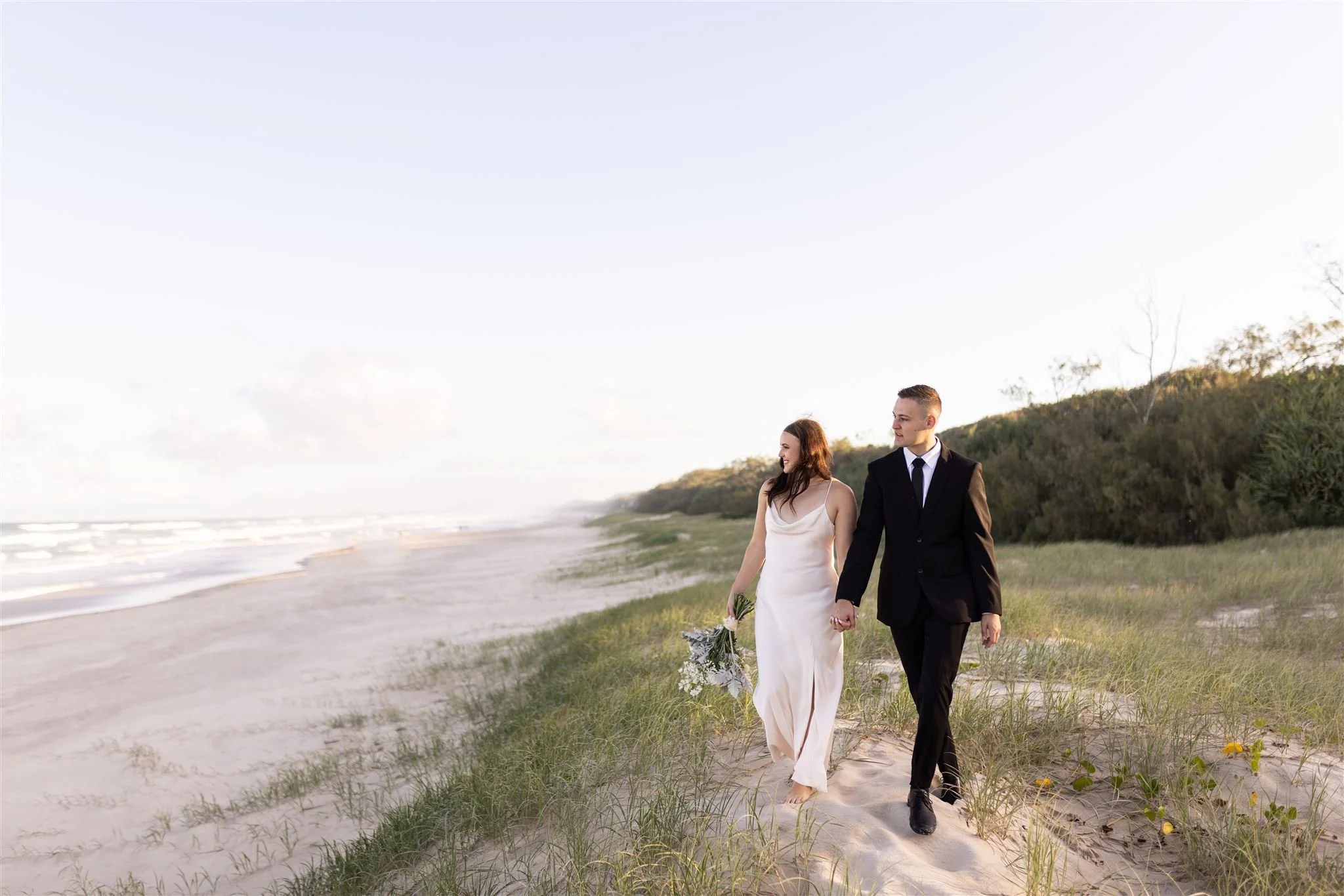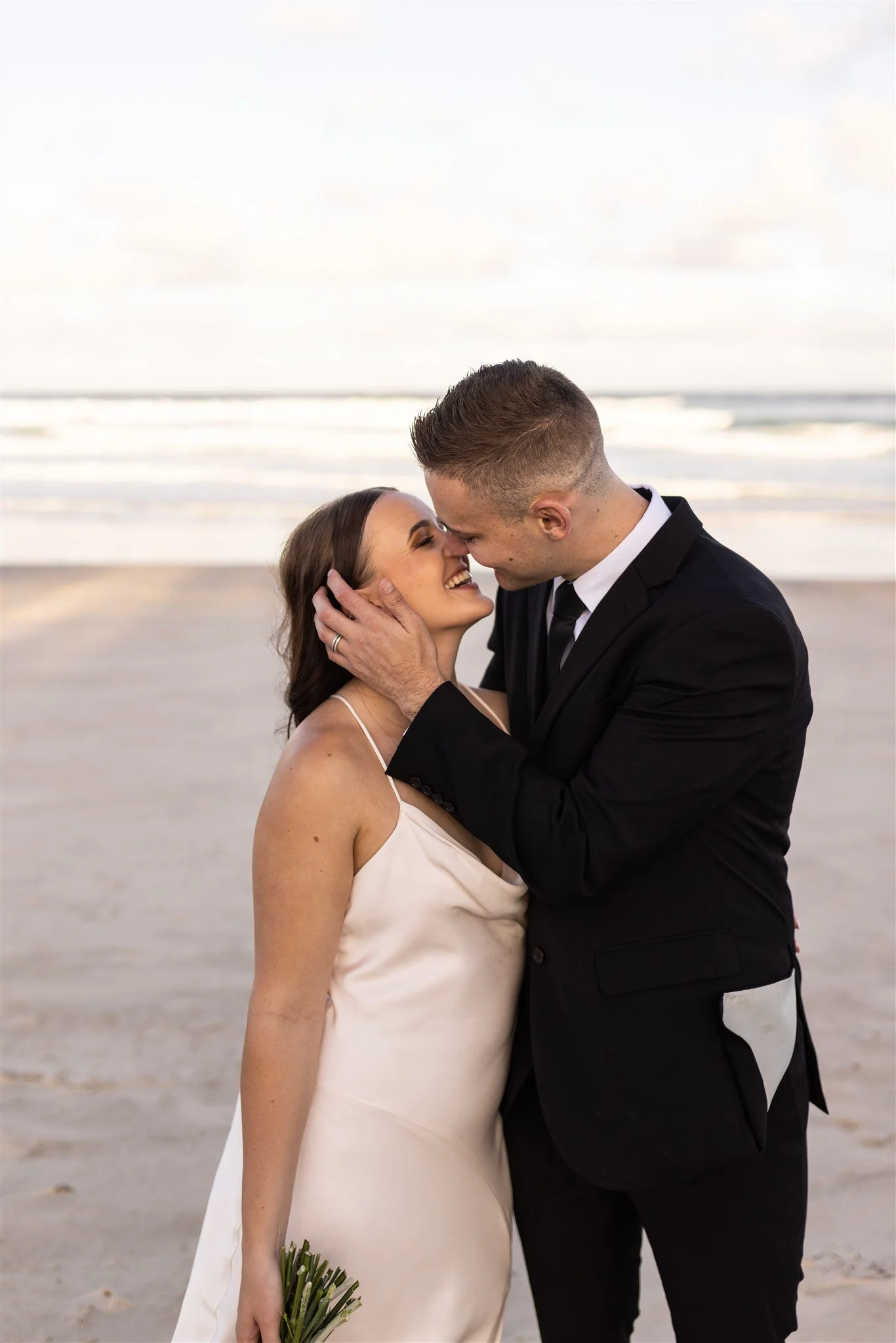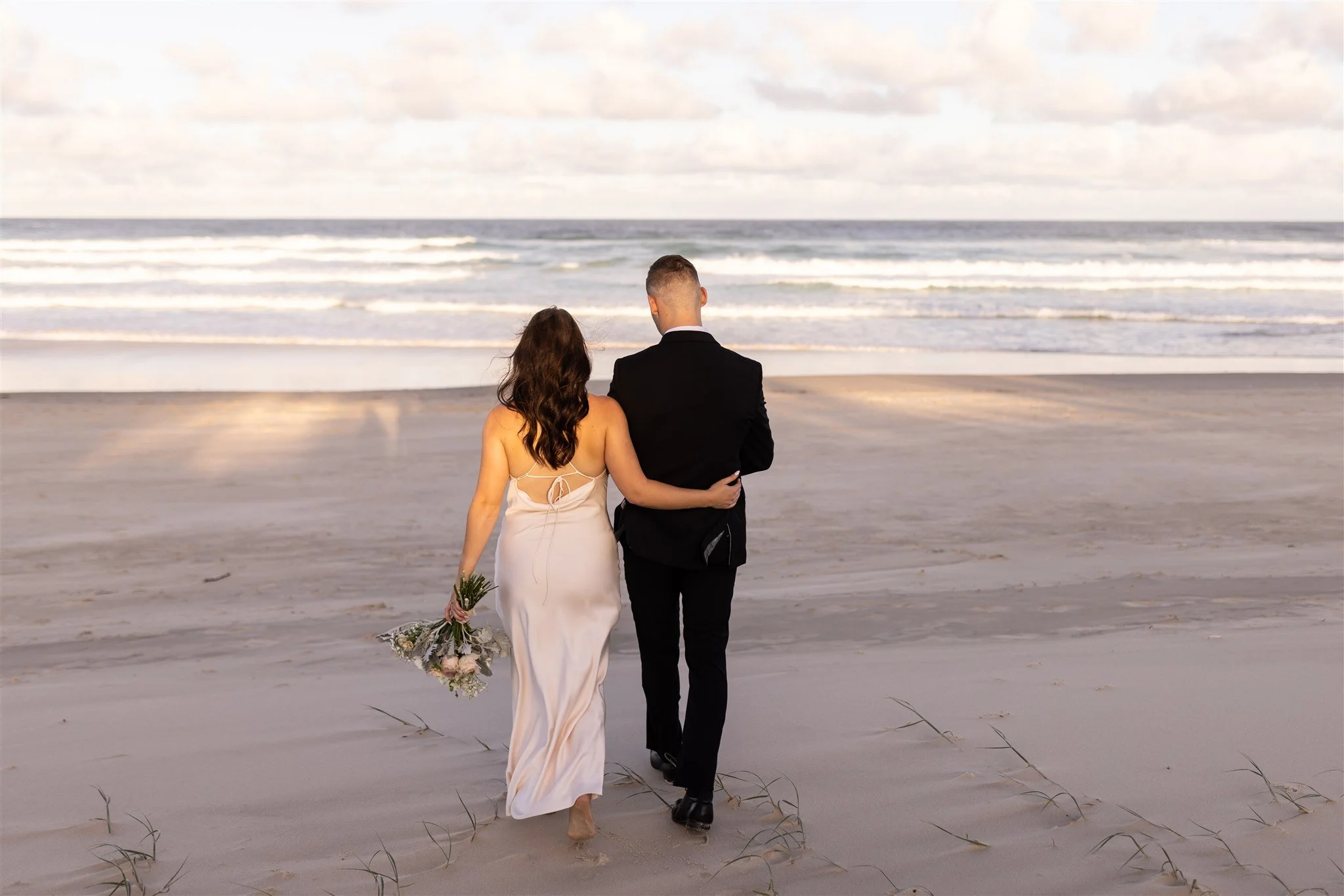 Right on the border of NSW and Queensland, Carly and Liam had their gorgeous elopement in Kingscliff, right beside the beach, with only their beautiful little one with them on the day. Accompanied by the most gorgeous weather, and officiated by our amazing celebrant Jess, their elopement by the sea couldn’t have been anymore perfect.
