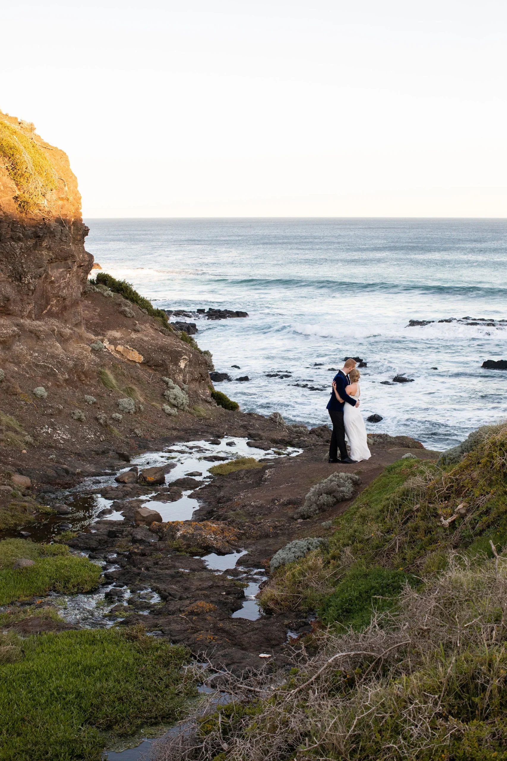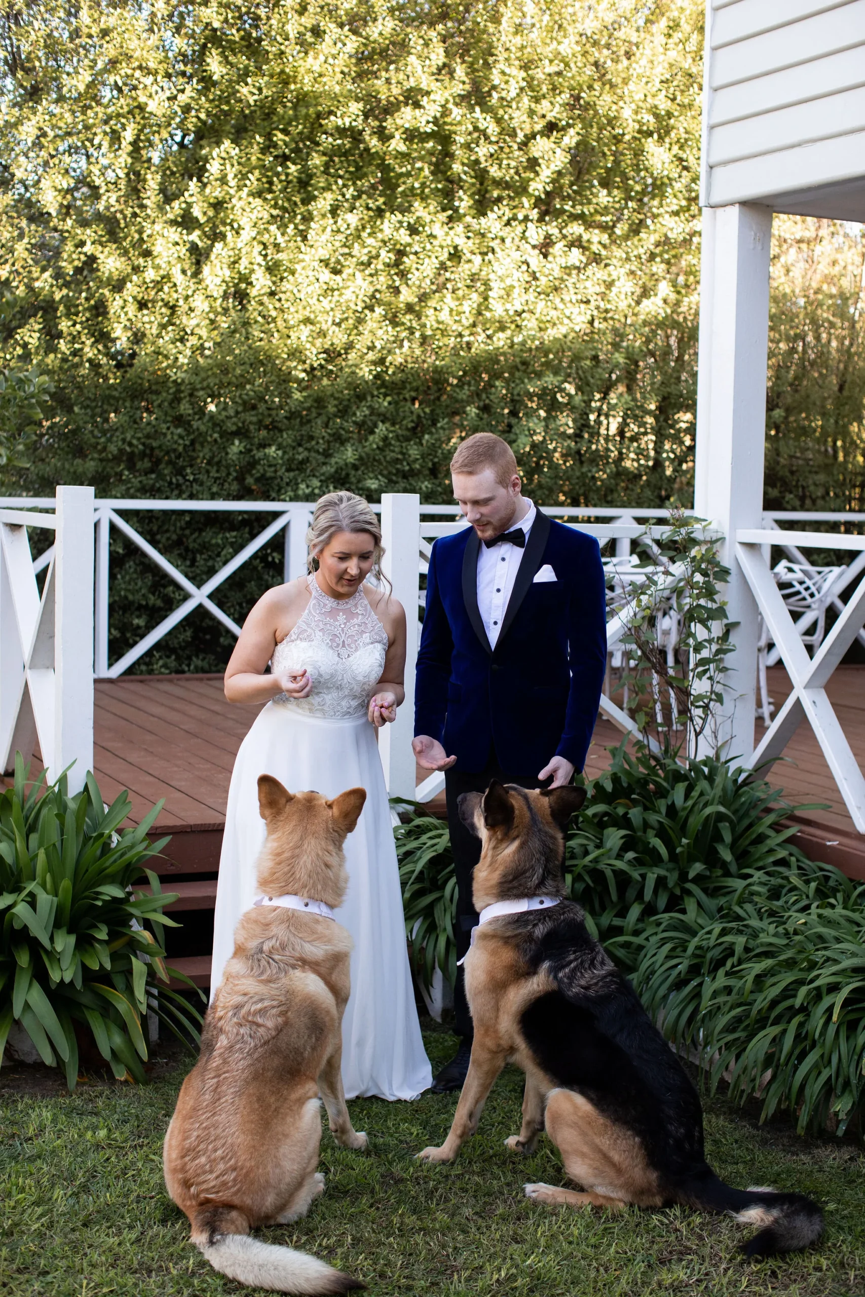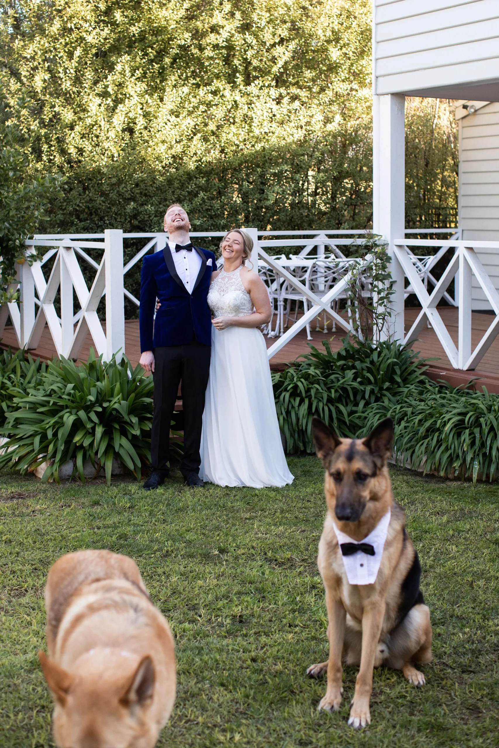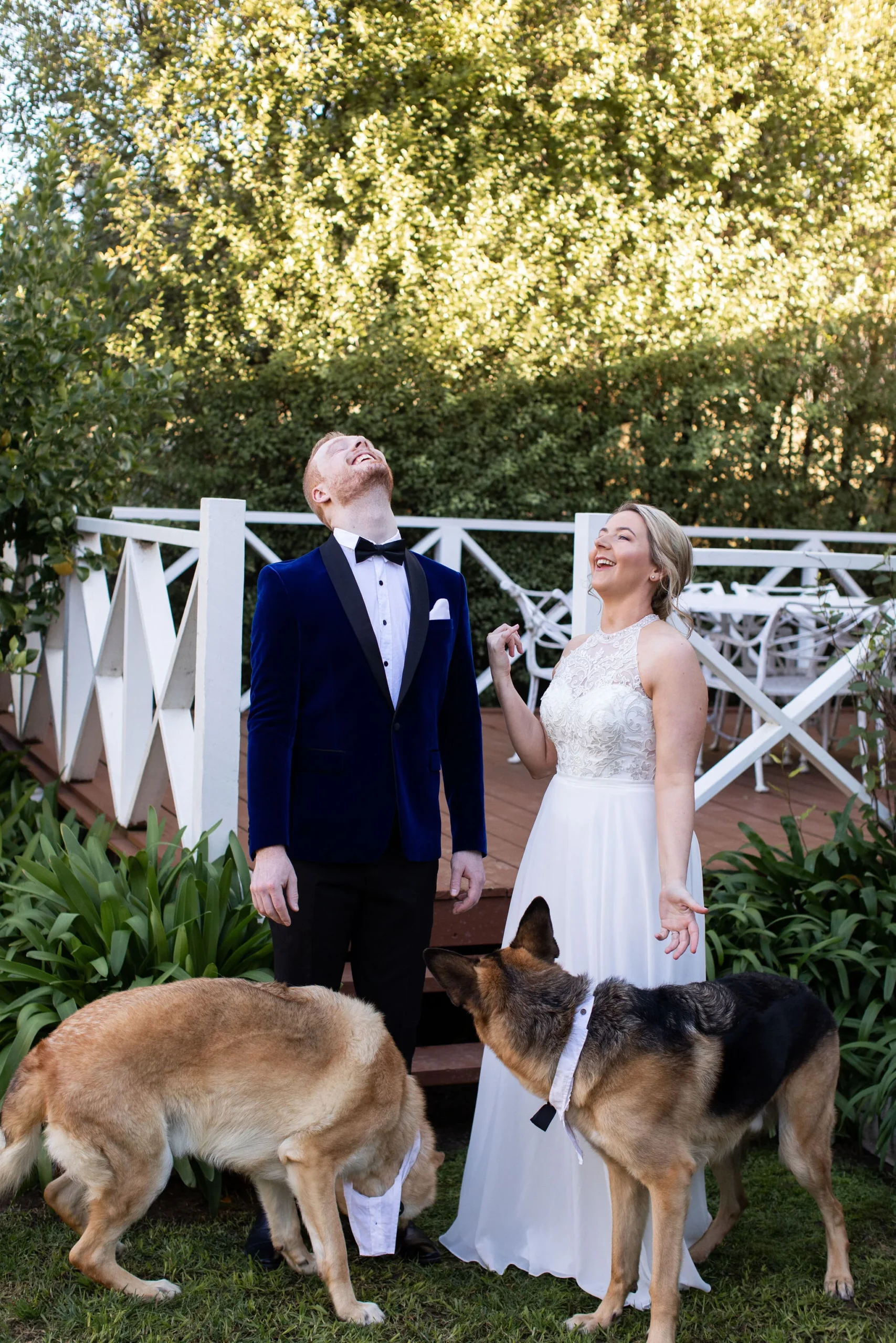 Getting ready in a local Air BnB, Laura and Damien were joined by their beautiful fur babies (Loki and Thor) prior to a perfect winters day cliffside elopement on the Mornington Peninsula. Proof that in Covid times love will always win.