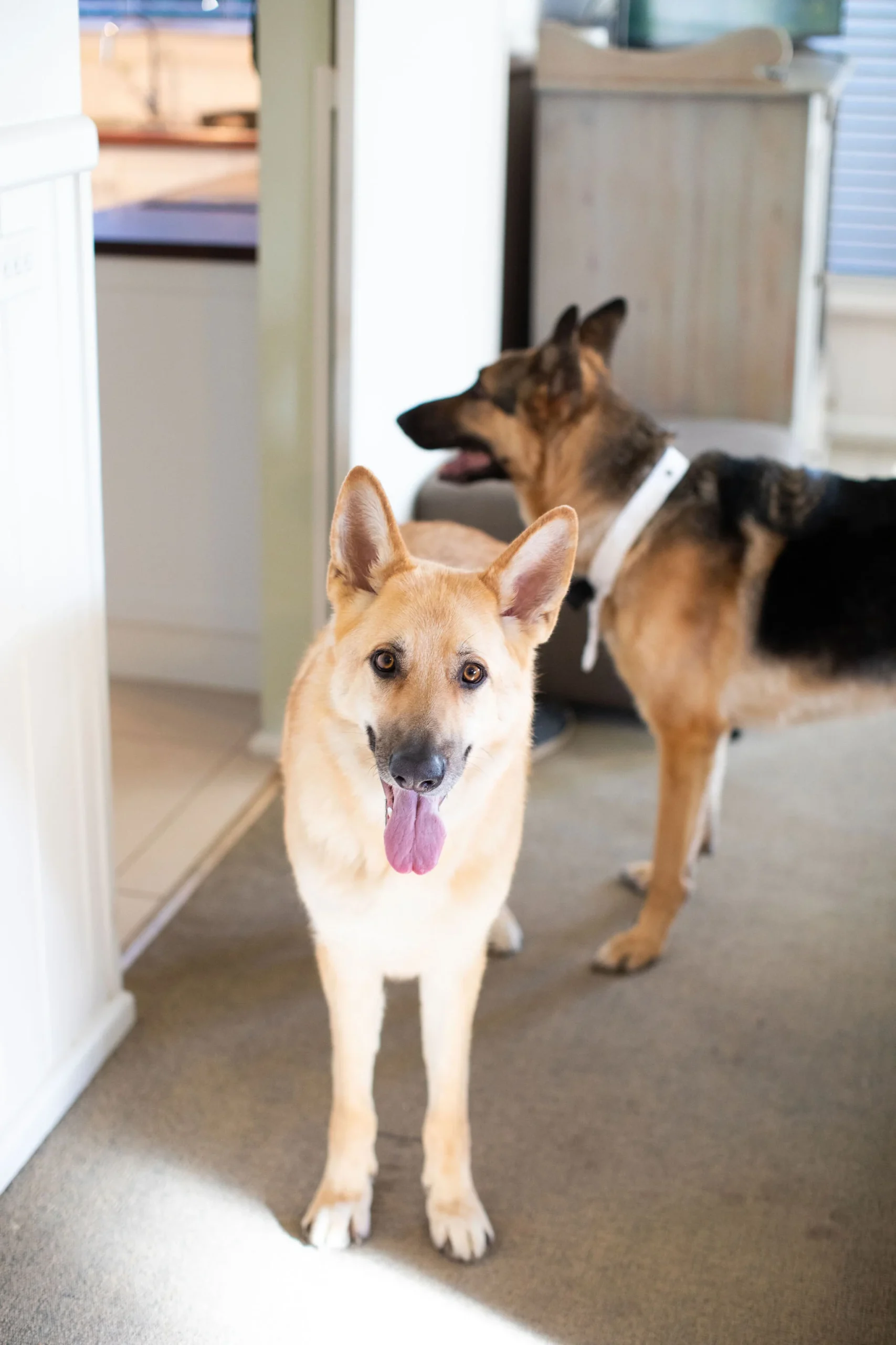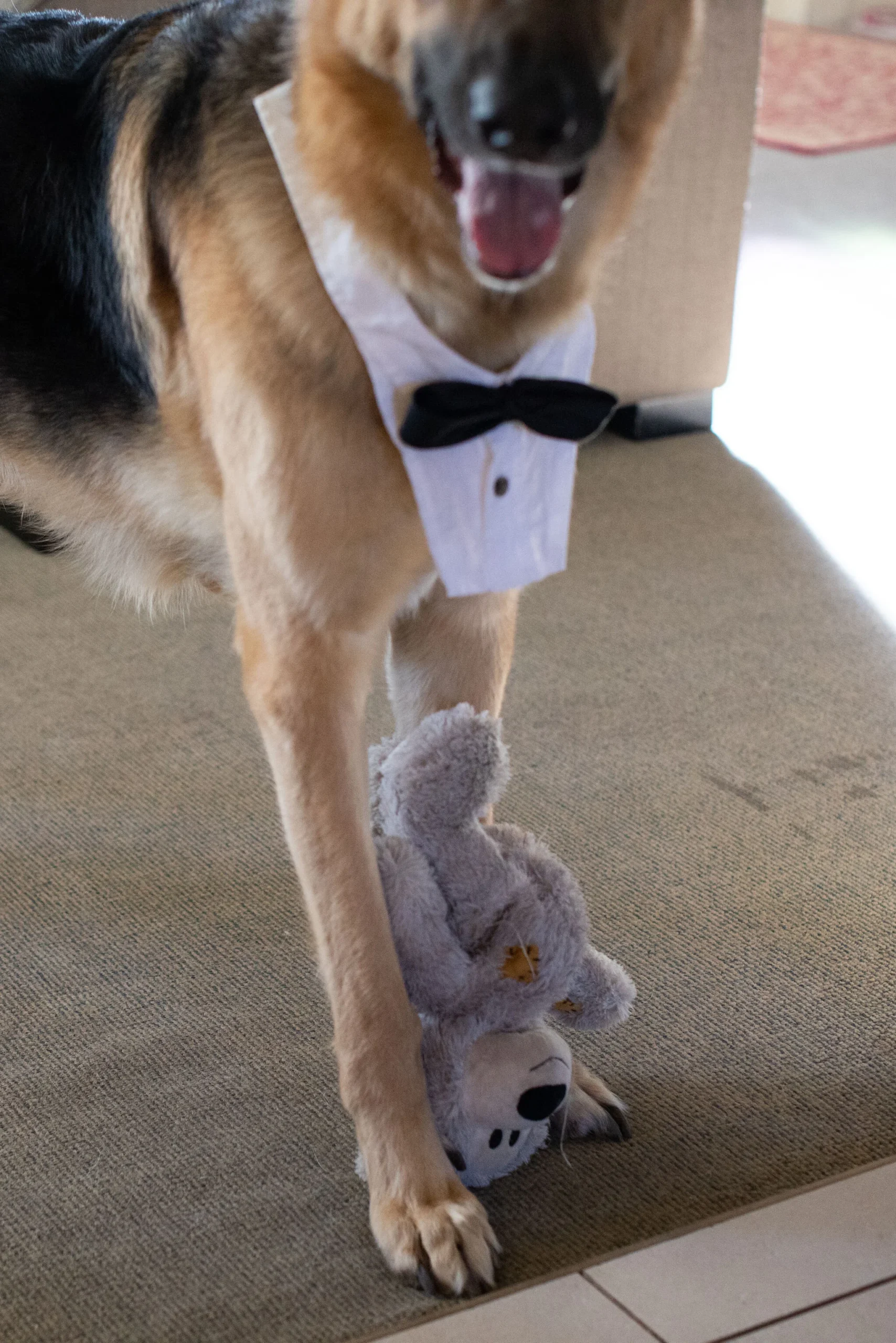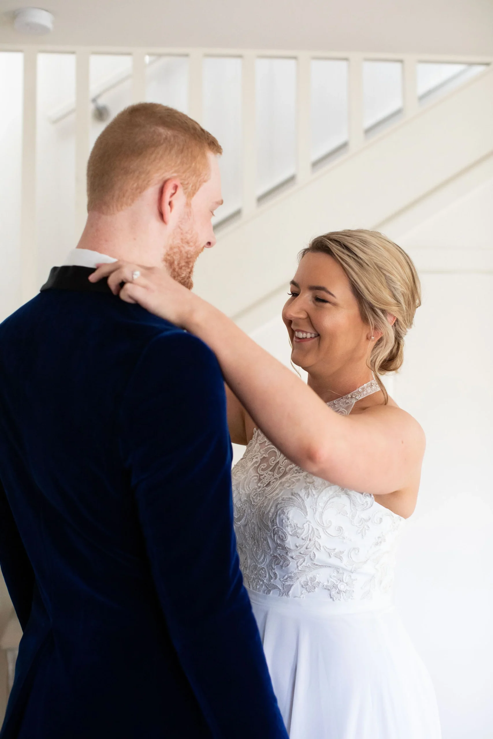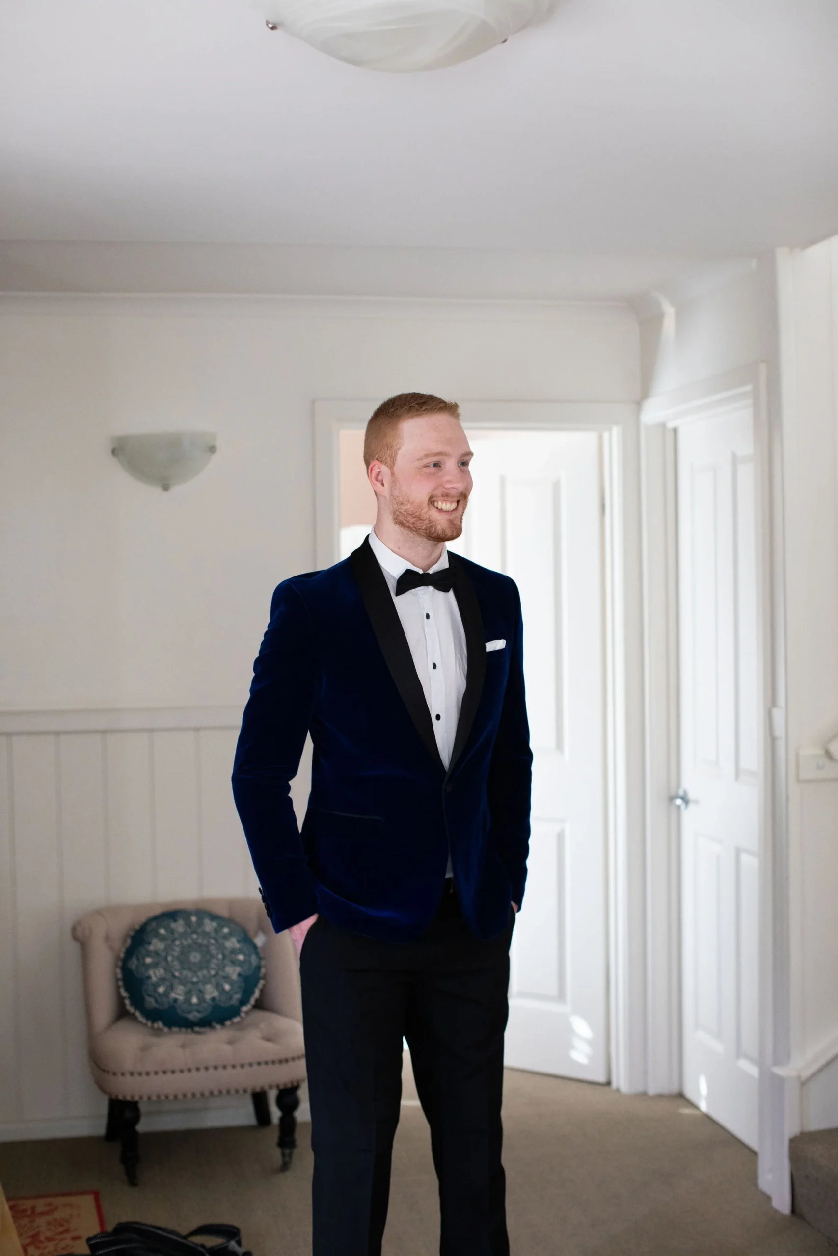 Getting ready in a local Air BnB, Laura and Damien were joined by their beautiful fur babies (Loki and Thor) prior to a perfect winters day cliffside elopement on the Mornington Peninsula. Proof that in Covid times love will always win.