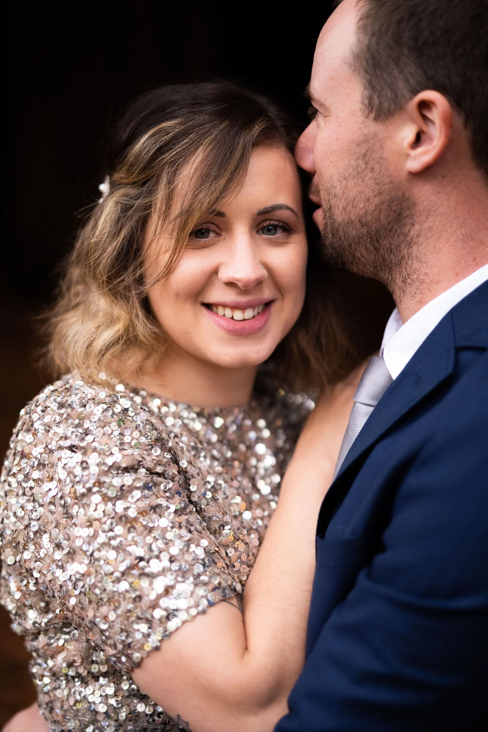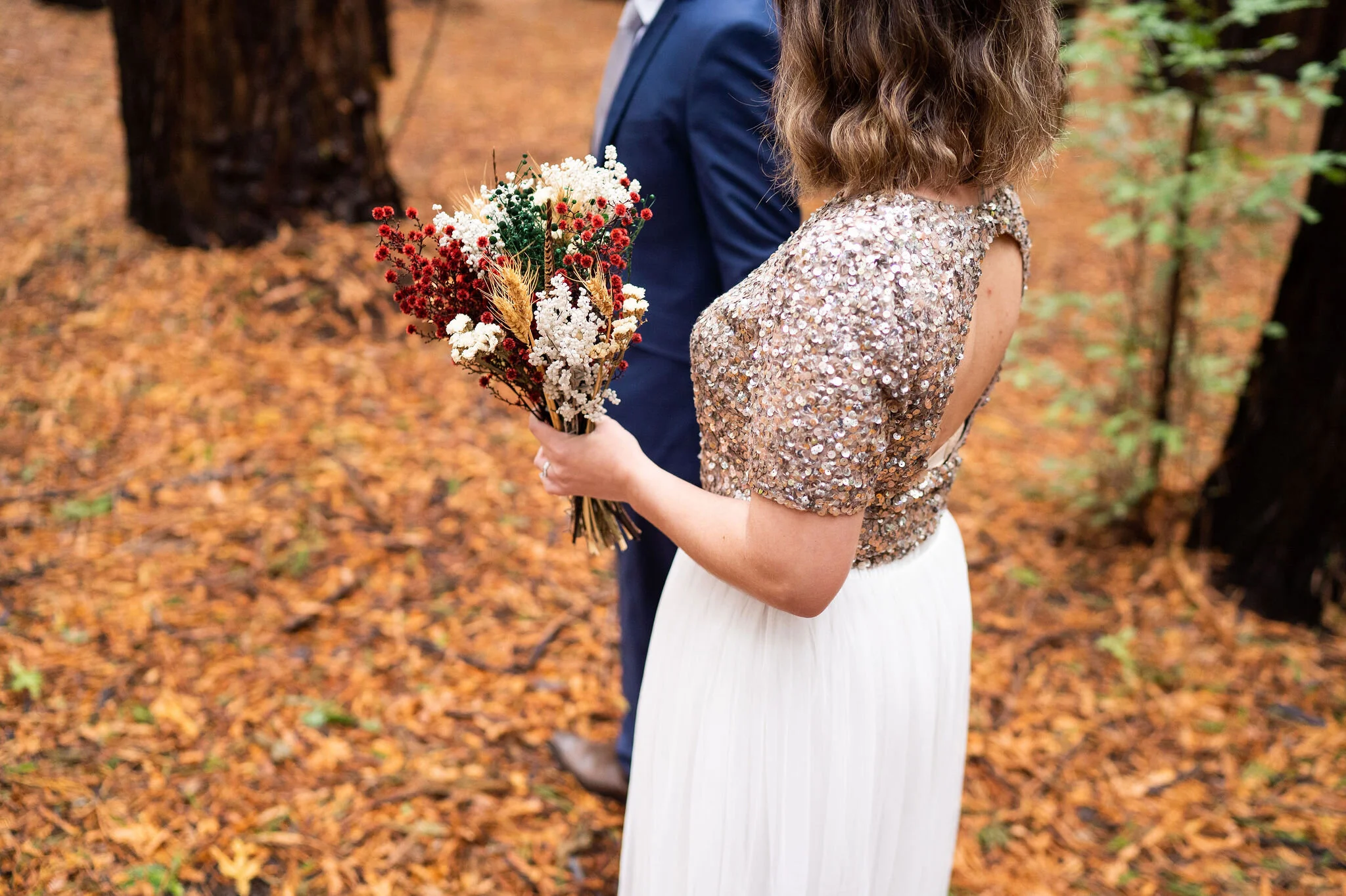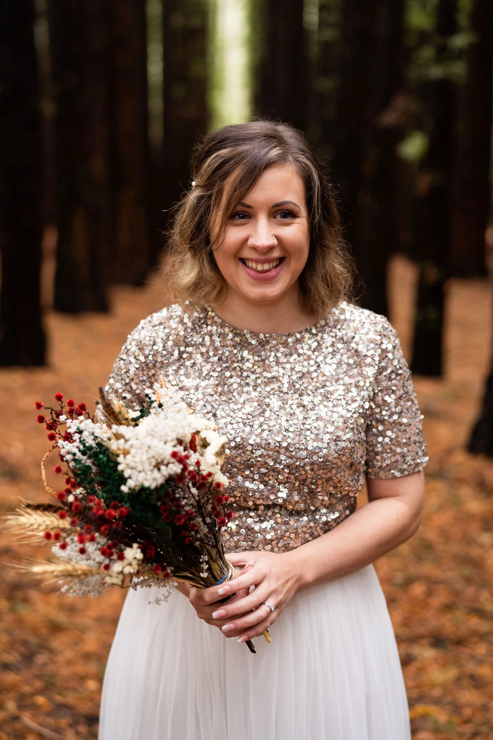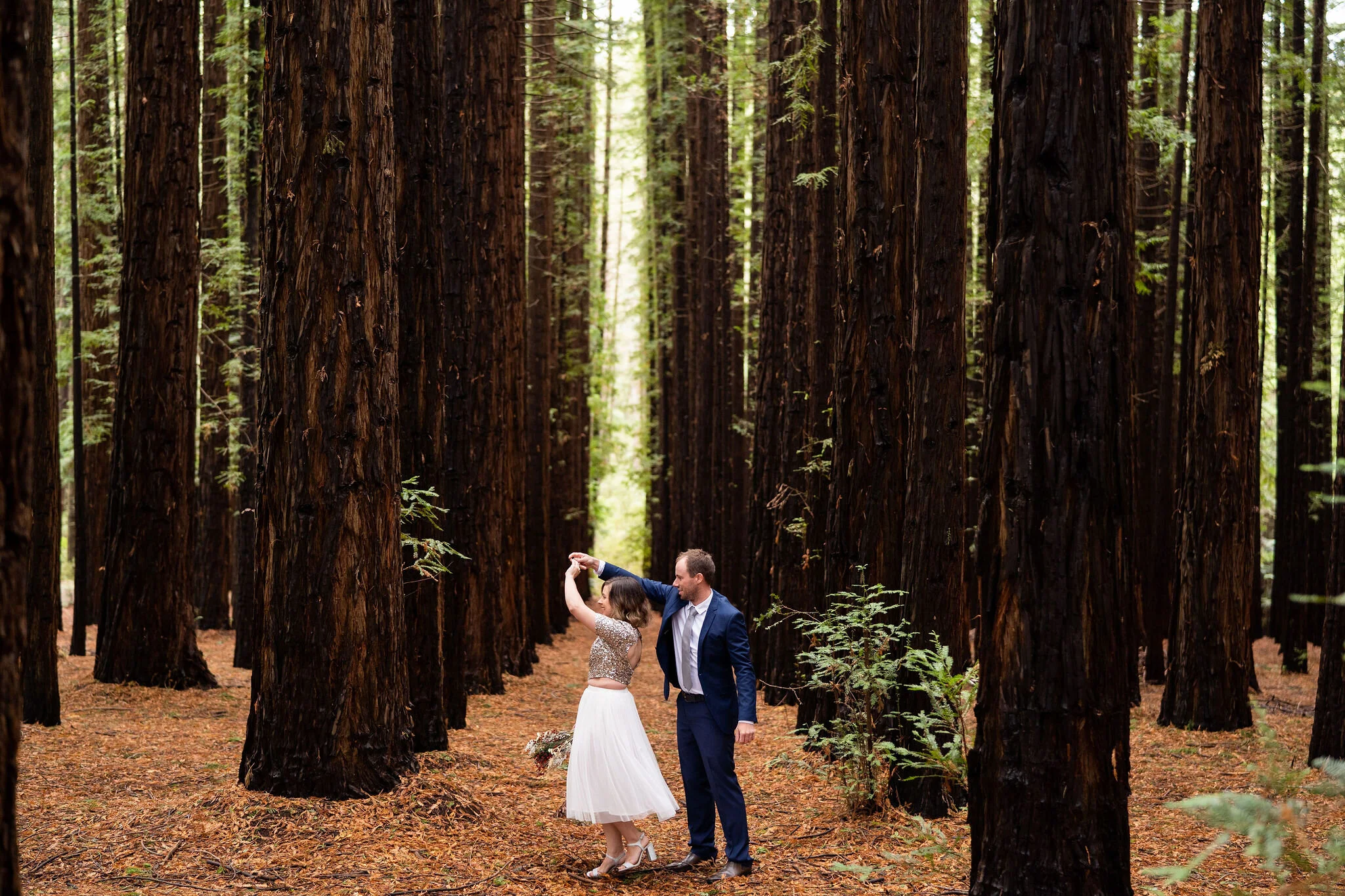 Angela looking gorgeous in a two piece sparkling keyhole back top and tea length skirt and Callum looking dapper in navy, there was plenty of laughs and love for photo time under the towering trees.