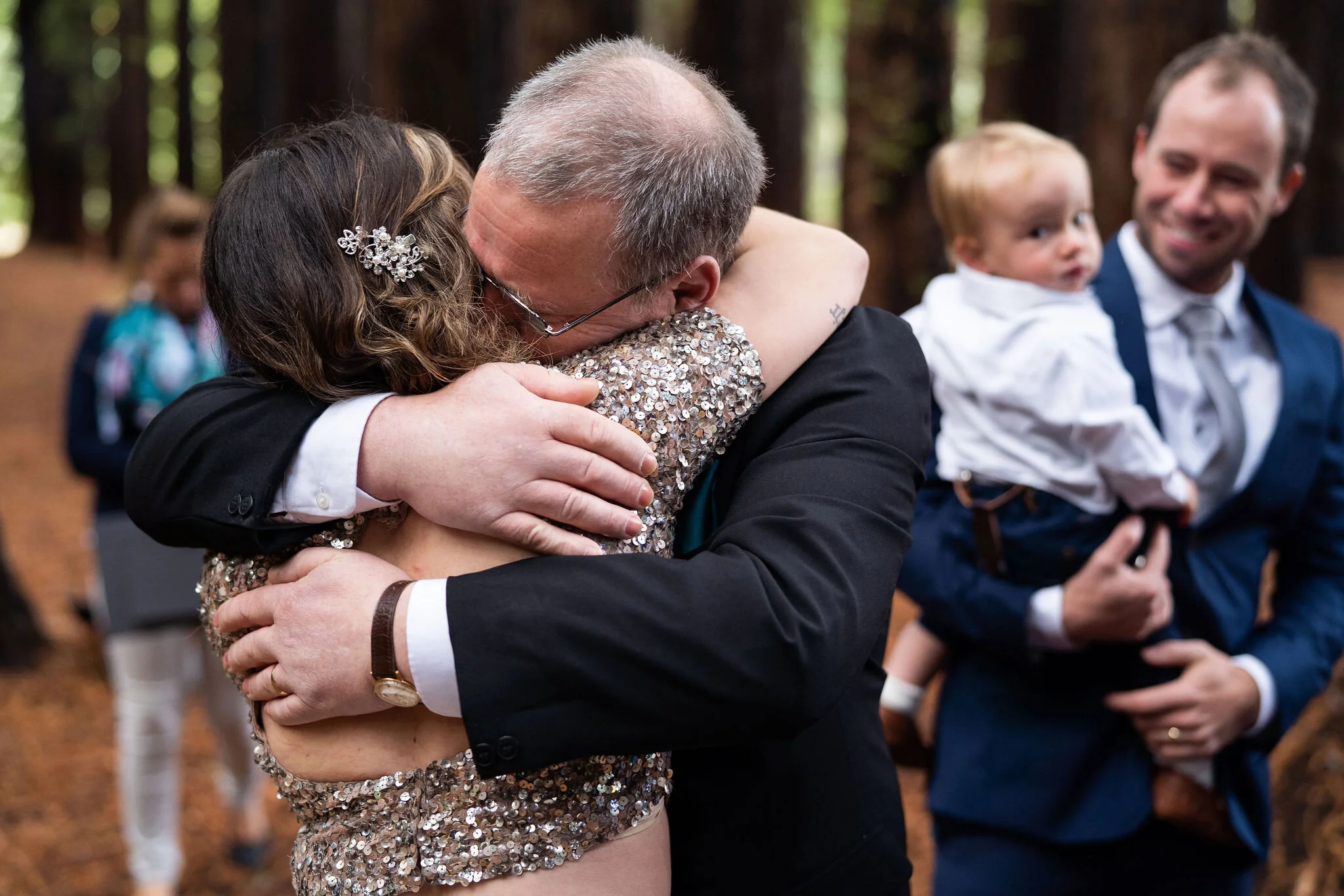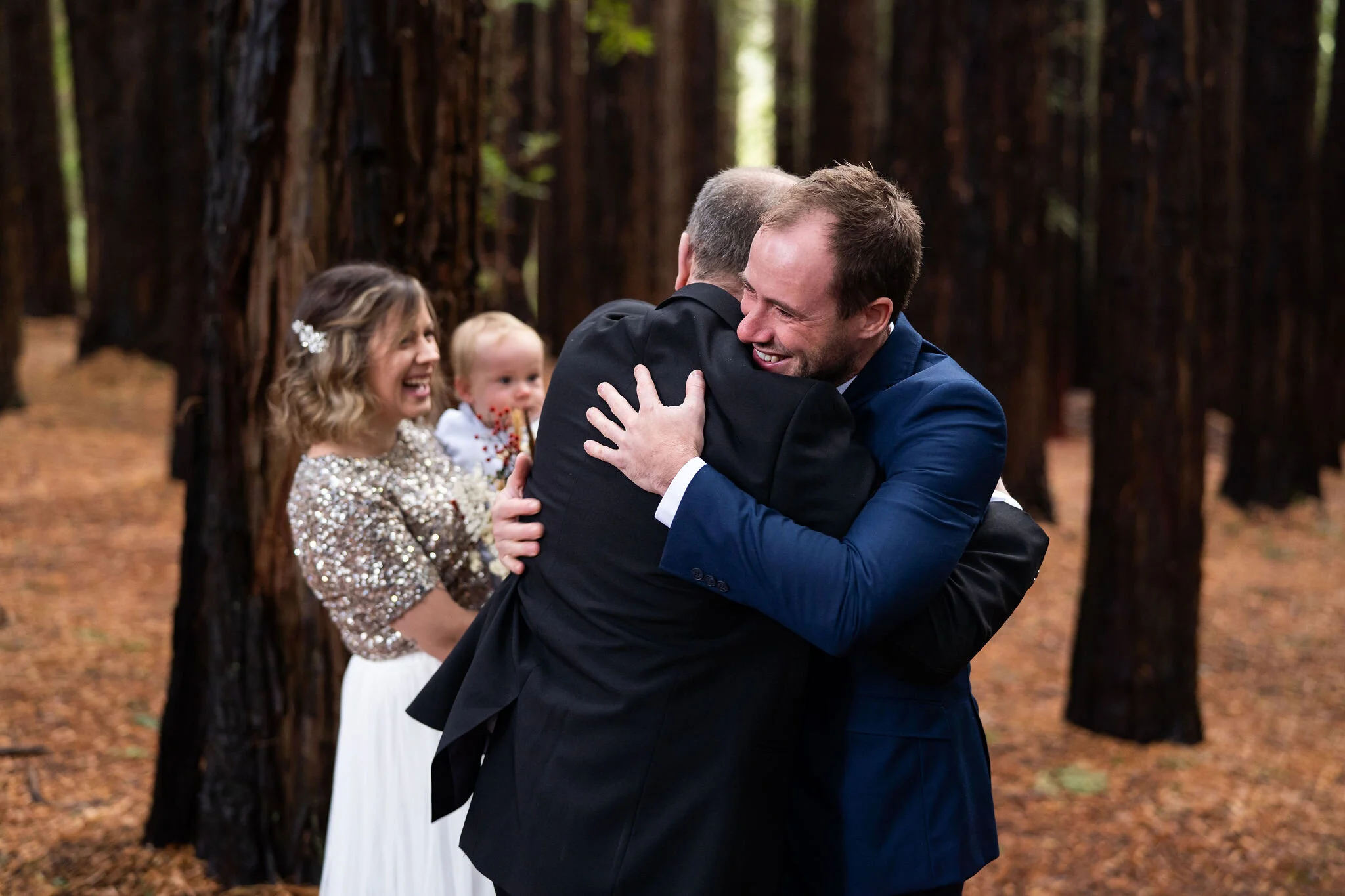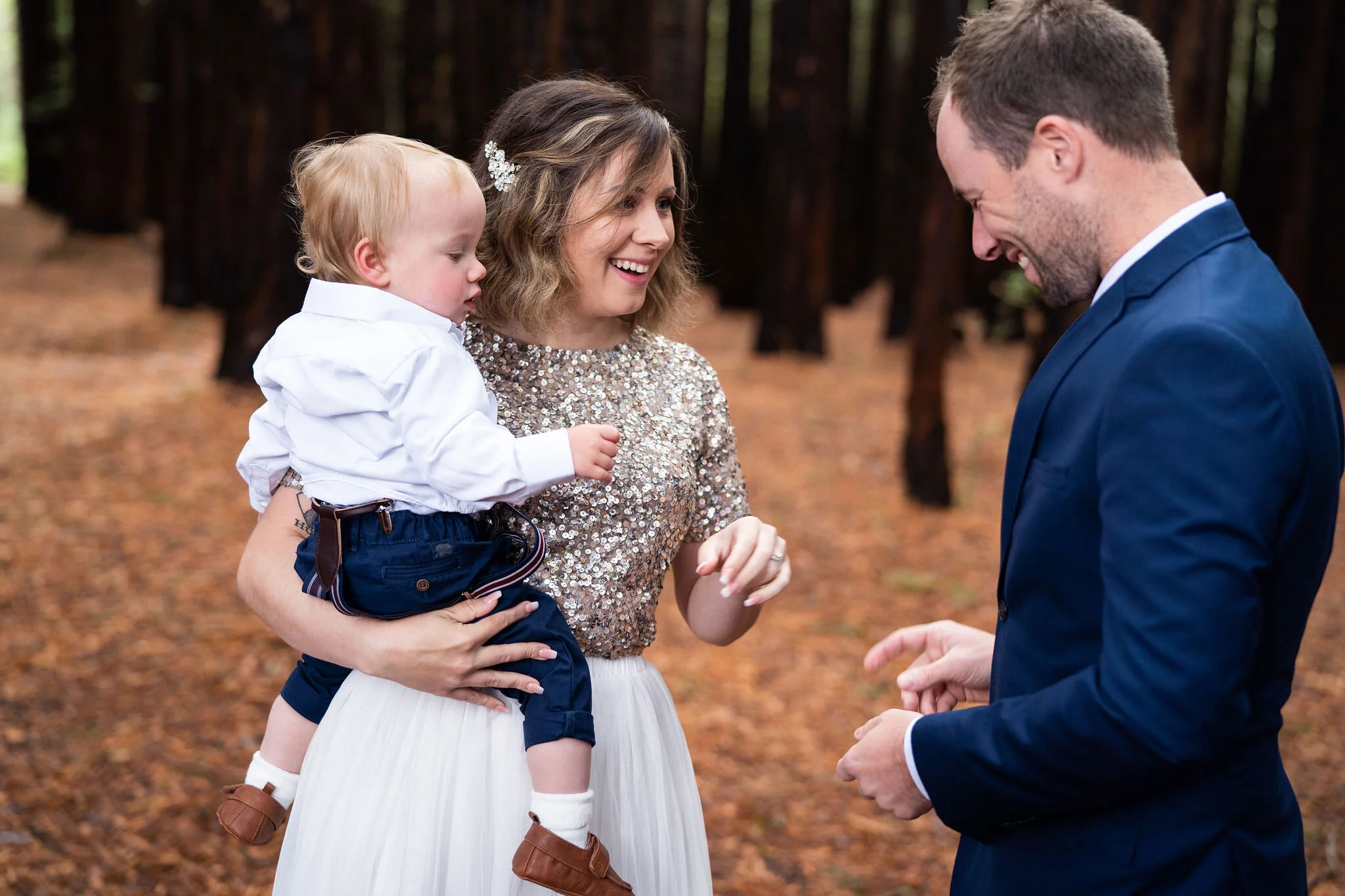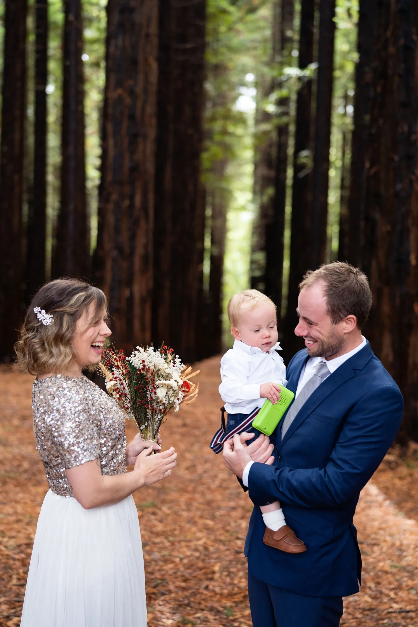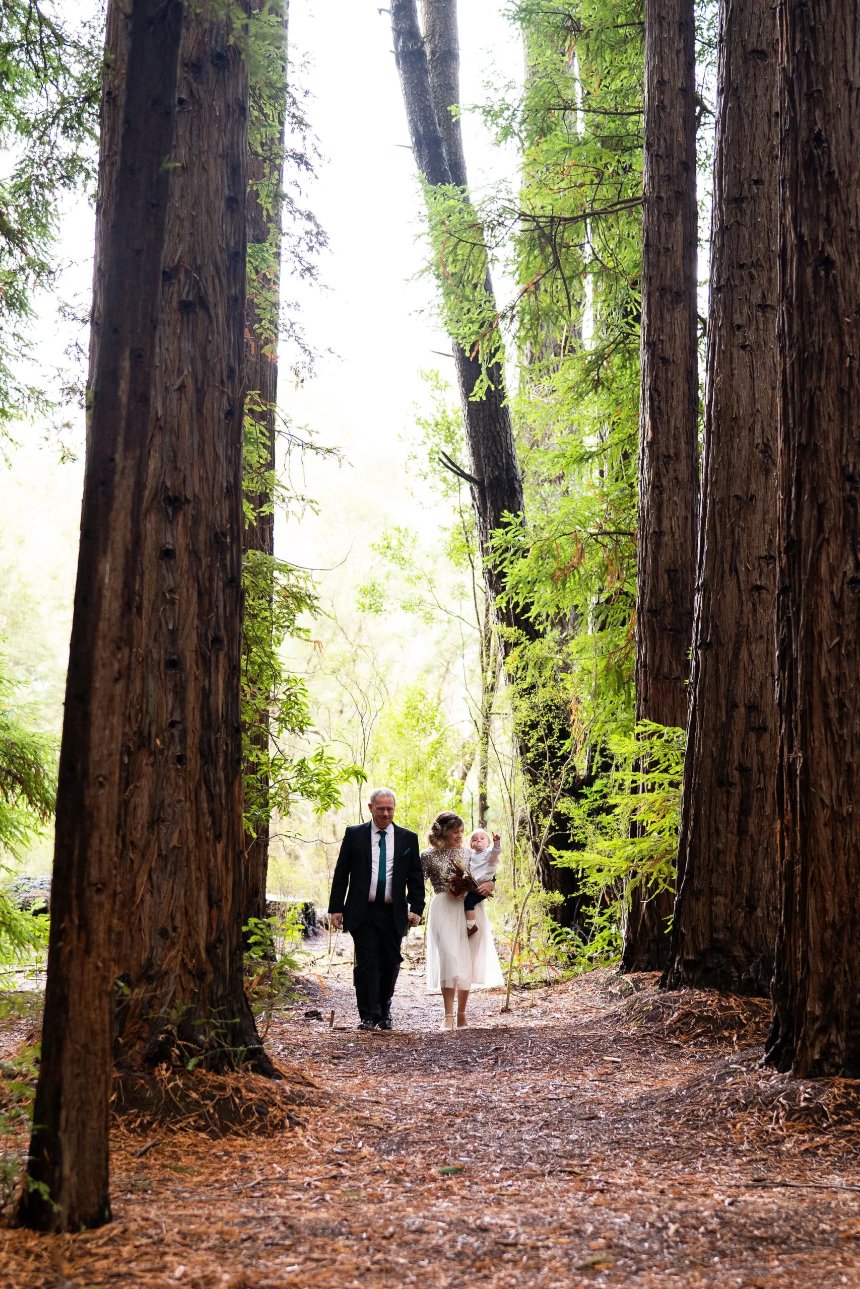 A beautiful little family affair. Joined by their little one and both their parents, there wasn’t a dry eye as Angela walked down the nature ‘aisle’ – the perfectly symmetrical beauty of the Redwood Forest in Warburton. This place is very special, the perfect place for a beautiful intimate wedding with the Elope Yarra Valley crew.