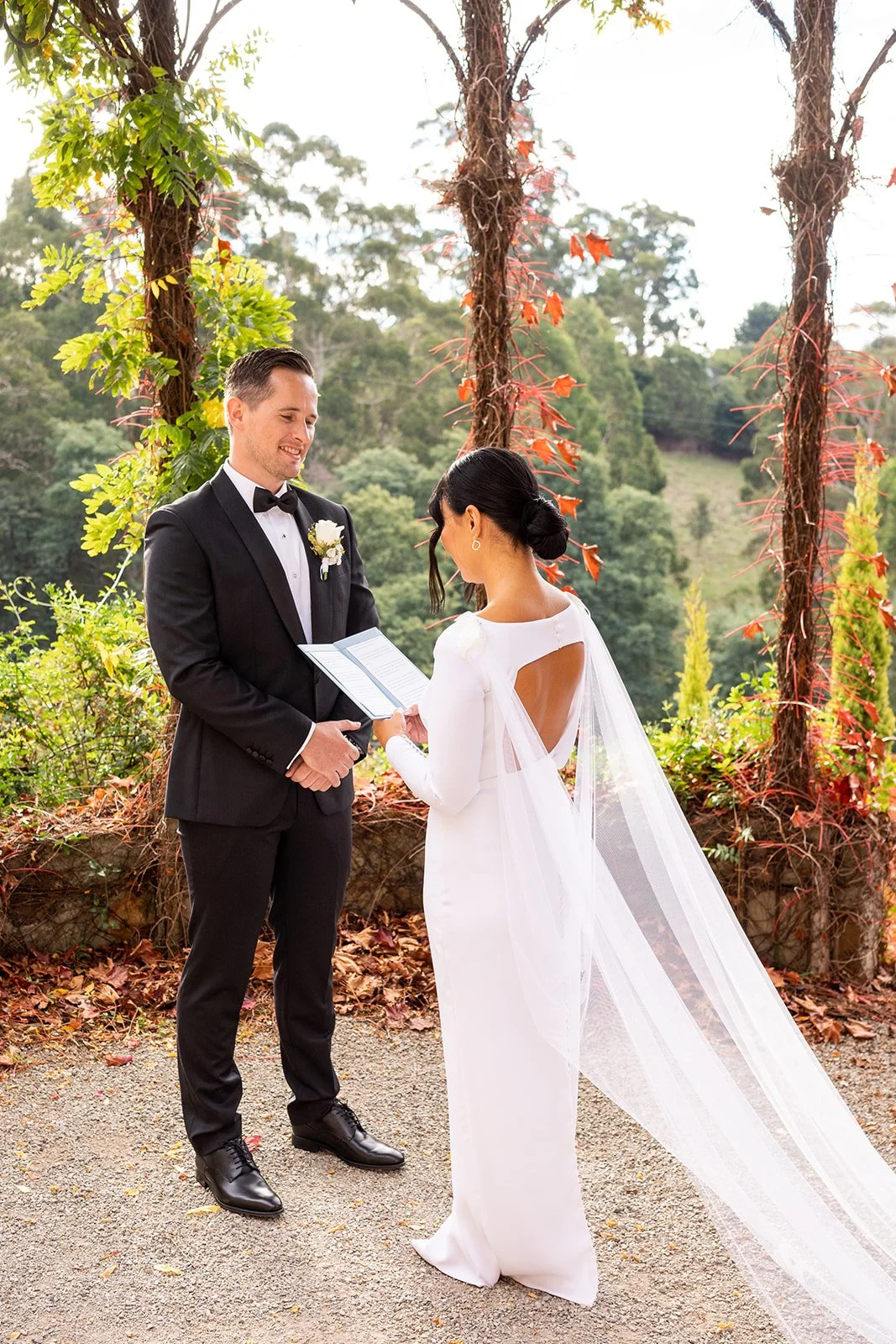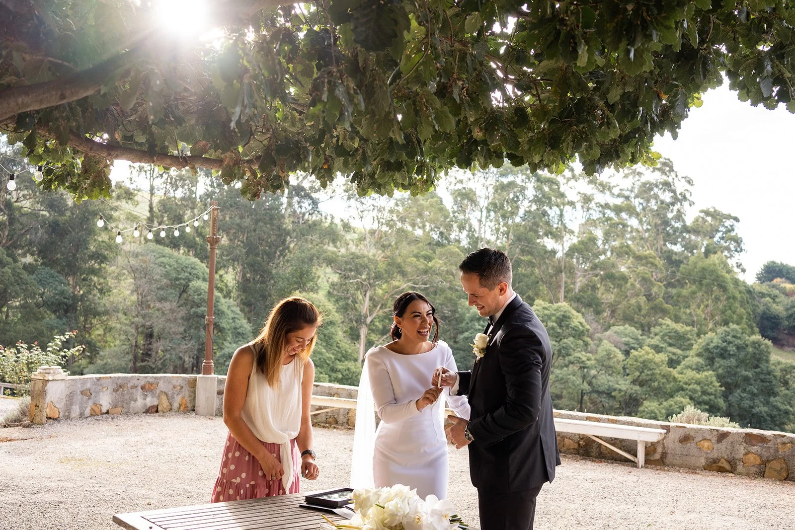 After Ciaran and Larissa were hitched and had some photos captured around the grounds, they popped a bottle of champagne and shared a grazing platter overlooking to gorgeous valley views, then staying overnight in the beautiful cottage accomodation onsite for their mini honeymoon afterwards.