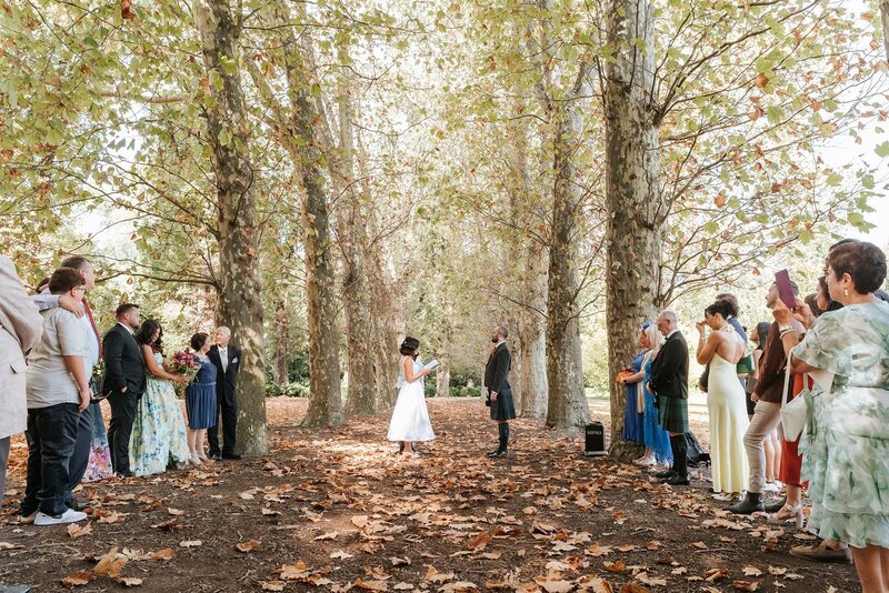 The Fitzroy or Treasury Gardens are beautiful city locations to have your elopement wedding right in the heart of Melbourne CBD. You can either marry here with our elopement package or as a part of our micro wedding package where we can recommend nearby private dining restaurant options for you. There are many small wedding location options we can chat to you about including gazebo spaces or various gardens. If your guest numbers are less than 15 the iconic Conservatory is available for your ceremony in daylight saving months of the year (Oct - March) for a further ceremony fee. If urban vibe photos are what you're after we are in walking distance to many laneways and architectural buildings in Melbourne.