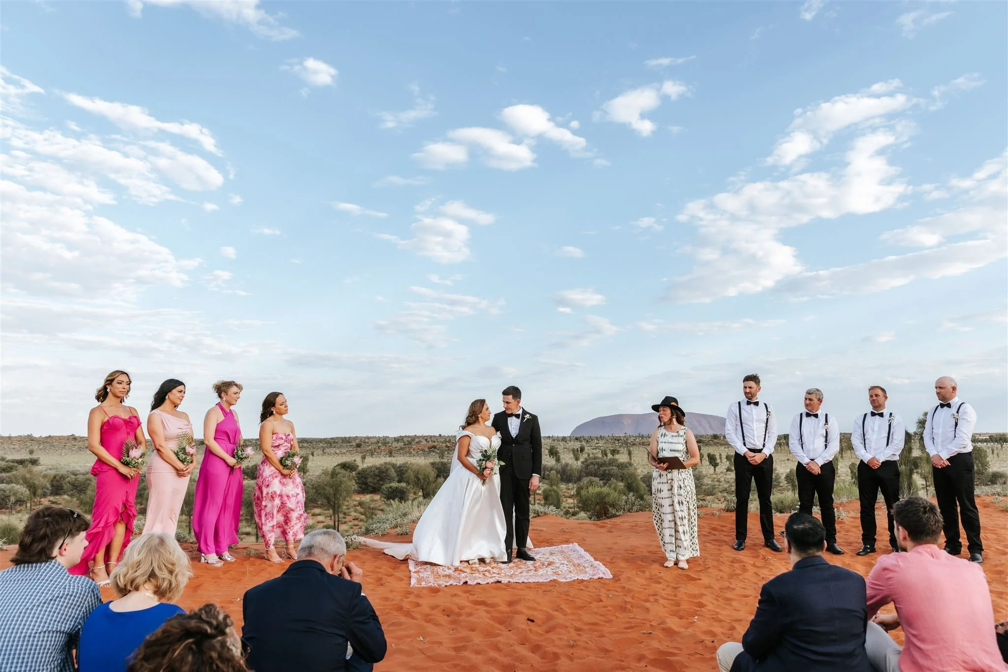 You don’t have to think about timelines, suppliers, or how to style a ceremony space in the middle of the outback — we’ve got it covered. You simply arrive, feel the red earth under your feet, and let the day unfold.